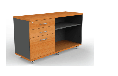 Módulo carro rodante, estructurado en melamina de 18mm. con cajonera de 2 cajones mas 1 kardex o 3 cajones mas repisero.