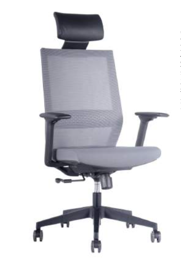 Silla con mecanismo sincrónico con desplazador de asiento, fijación en múltiples posiciones y sistema de tensión regulable. Apoya cabezas de PU regulable en altura, opcional. Respaldo de malla con soporte lumbar regulable en altura. Apoya brazos de PU regulables en altura, ángulo y profundidad. Asiento de espuma inyectada tapizado en tela. Gas de 120mm, base de nylon de 660mm y ruedas de PU negras de 60mm.