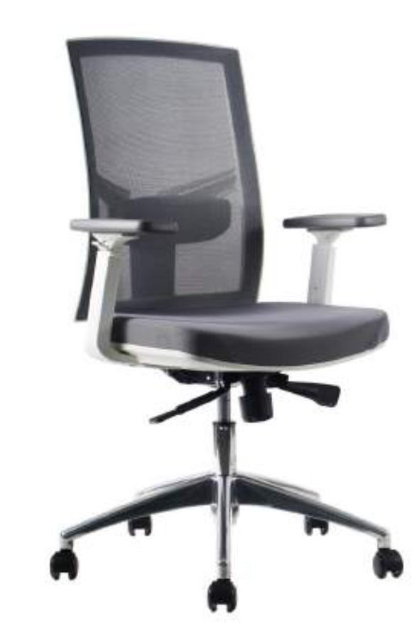 Silla con mecanismo sincrónico, fijación en múltiples posiciones y sistema de tensión regulable. Respaldo de malla con soporte lumbar ajustable en altura. Apoyabrazos de PU graduables en altura, ángulo y profundidad. Asiento de espuma inyectada tapizado. Gas de 120 mm, base de aluminio de 640 mm y ruedas de PU gris de 50 mm.