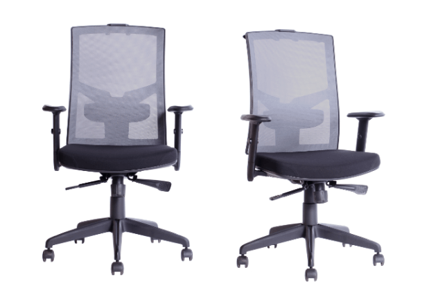Silla Ejecutiva respaldo malla gris, asiento tapiz negro. Brazo regulable en altura, mecanismo sincrónico, base nylon, soporte lumbar regulable.