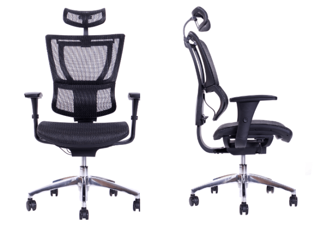 Silla Gerencial respaldo y asiento malla color negro. Brazos 4D regulable en altura, mecanismo sincronico.