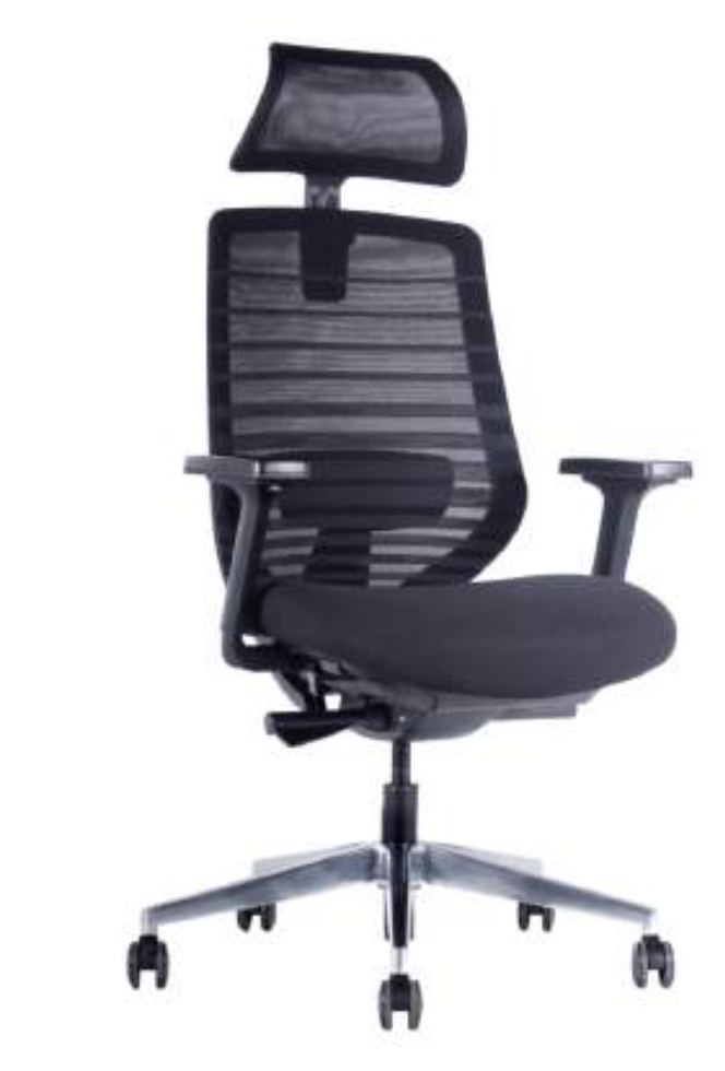 Silla con mecanismo Syncrodinamico, con deslizador de asiento, fijación en múltiples posiciones y sistema de tensión regulable. Apoya cabezas de malla regulable en altura. Respaldo de doble malla con soporte lumbar graduable en altura. Apoya brazos de PU ajustables en altura, ancho y profundidad. Asiento de espuma inyectada tapizado en tela. Gas de 100mm, base de aluminio pulido de 700mm y ruedas de PU negras de 60mm.