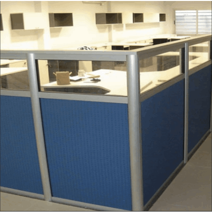 Paneles divisionarios que combinan su fabricación en Telas y Vidrio.