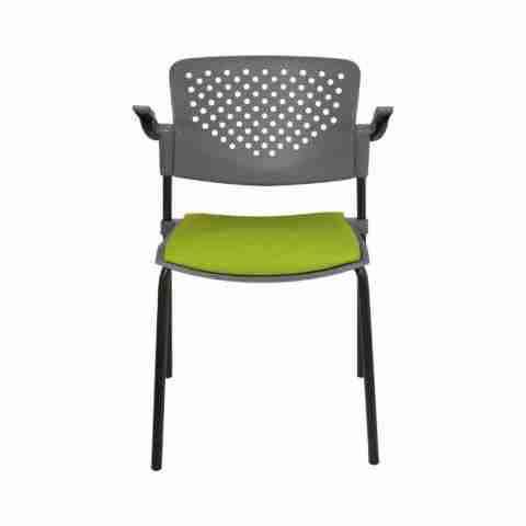 Silla con respaldo en Polipropileno y asiento tapizado en diferentes colores y con brazos en polipropileno