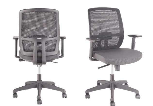 Silla Ejecutiva asiento tapizado negro, respaldo malla. Brazos regulable en altura, mecanismo sincrónico.